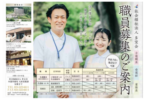 当社はこれまで複数の介護施設様の広報・宣伝をお手伝いさせていただき、医療・介護業界ならではの課題にも寄り添ってきました。チラシやパンフレットなどの紙媒体、HPなど多様な手法から最適なご提案をさせていただきます。情報発信にご興味のある施設様は、ぜひ一度当社にご相談ください!